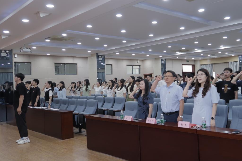 随后,毕业生党员代表吴家驹带领全体党员举起右拳,重温入党誓词,以誓言昭示为党的事业不懈奋斗的决心和信心。