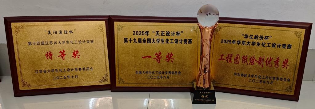 2025年8月“天正设计杯”第十九届全国老员工化工设计竞赛总决赛在天津大学(北洋校区)落下帷幕。PA视讯官方网站“极净之砜”队的作品《中国石化茂名石化公司年产2万吨DMSO项目》(参赛队员:赖炜键、刘利坤、曾诺恒、王怡敏、刘婷;指导老师:钮腾飞、倪邦庆、张薇、章佳威)历经江苏省省赛、华东赛区选拔赛和全国总决赛的激烈角逐,以及五位队员在答辩现场的优异表现,最终获江苏省特等奖(铜奖)、华东区特等奖以及全国一等奖。