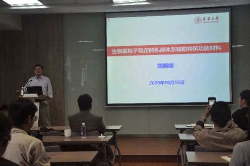 2020年10月15日下午,东华大学的武培怡教授和隋晓锋教授来PA视讯官方网站学术交流,并在化工楼A316报告厅给师生们奉献了一场关于“智能弹性体和纤维”和“生物基粒子稳定的乳液体系辅助构建功能材料”的精彩学术报告。本次报告由副经理马丕明教授主持,PA视讯官方网站的九十余名员工参加。马丕明教授首先对武培怡老师和隋晓锋老师来访表示热烈欢迎,接着武老师和隋老师简要地介绍了其研发团队的工作现状和研究方向。