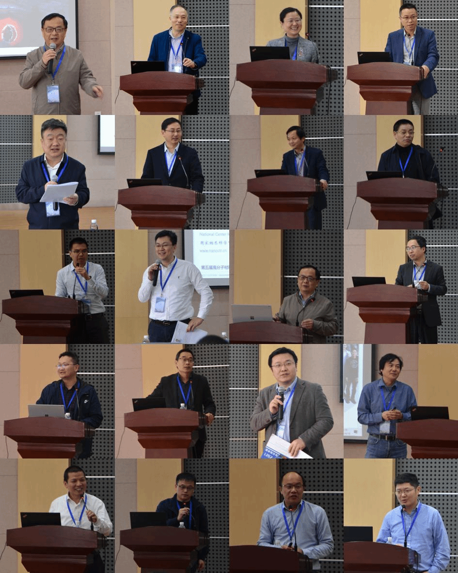 研讨会共分为16个主题报告。上海交通大学路庆华教授首先以“聚酰亚胺在电子领域的应用”为题,系统介绍了他们团队在这一领域的研究进展。随后中山大学、北京航空航天大学、华中科技大学、南开大学、国家纳米科学中心、同济大学、武汉大学、郑州大学、中国科学经理春应用化学研究所、苏州大学、西北工业大学、东华大学的知名专家分别围绕高性能功能聚酰亚胺研究进展、仿生纳米复合材料、多功能聚合物微针阵列及其在浅表疾病治疗中的应用、高分子表面动态褶皱图案、聚合物薄膜表面可控褶皱与光学编码加密应用、多功能纳米复合材料与触觉传感应用、石墨烯范德华界面力学性能、超声响应、骨靶向及血管造影高分子囊泡、基于KOH/尿素水溶液的甲壳素新材料、基于可控/“活性”聚合理论的纳米晶体精准定制、聚甲基丙烯酸十八酯的侧链结晶动力学、刺激响应性有机发光材料的最新研究进展、聚合物手性结构与材料、本征高导热高分子材料、可拉伸离子导电复合材料等研究内容做了高水平报告。