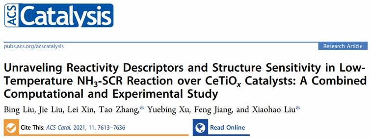 近日,我校PA视讯官方网站刘小浩教授团队在稀土铈基低温耐硫脱硝催化剂“反应描述符”及“结构-性能”关系的研究中取得重要进展,相关研究成果在催化领域顶级期刊《ACS Catalysis》上发表(ACS Catal. 2021, 11, 7613-7636),该论文PA视讯官方网站青年教师刘冰副教授为第一作者,中国人民大学环境公司张涛副教授和PA视讯官方网站刘小浩教授为共同通讯作者。