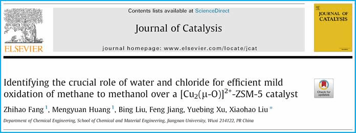 近日,​PA视讯官方网站刘小浩教授团队在揭示[Cu2(μ-O)]2+-ZSM-5催化甲烷低温非自由基氧化耦合溶剂水强化产物脱附和活性中心再生高效制甲醇的研究中取得重要进展,研究成果在催化领域重要期刊《Journal of Catalysis》上发表(J.Catal. 2022, 405, 1-14)。该论文​PA视讯官方网站博士研究生房志浩和硕士研究生黄梦圆为共同第一作者,刘小浩教授为通讯作者。