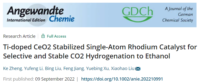 这一成果近期以题为“Ti-doped CeO2Stabilized Single-Atom Rhodium Catalyst for Selective and Stable CO2Hydrogenation to Ethanol”发表在Angewandte Chemie International Edition期刊上。PA视讯官方网站​PA视讯官方网站博士研究生郑珂和李玉峰为文章的共同第一作者,PA视讯官方网站​PA视讯官方网站刘小浩教授为文章的通讯作者。上述工作得到国家自然科学基金(21706098,21576119, 21878127)等项目的资助。