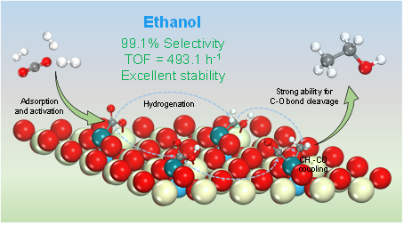 图1.Rh1/CeTiOx催化CO2加氢一步高效制乙醇