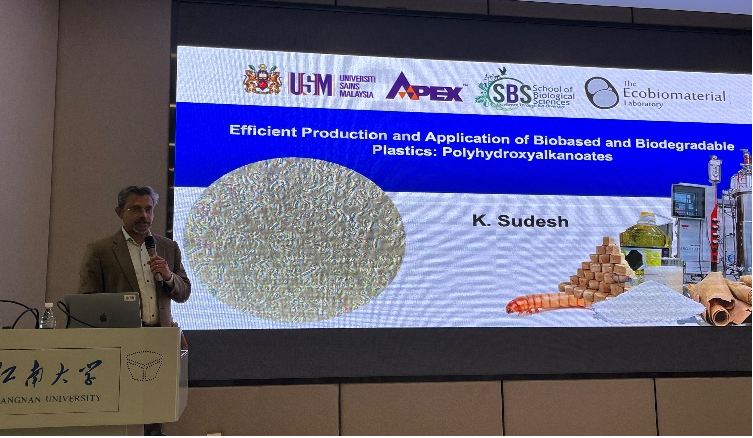 12月4日,马来西亚理科大学(UniversitiSainsMalaysia)的KumarSudesh教授应邀来访公司进行学术交流,并在知行楼C106进行了学术报告,金子达雄教授主持了此次报告会。