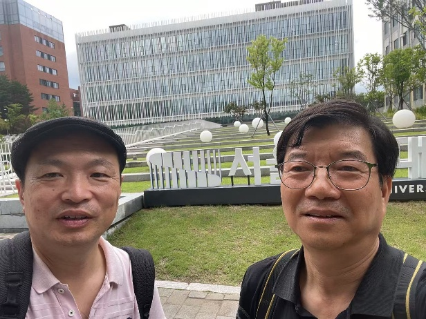 金子达雄教授(左)与Cheolsoo Jung教授(右)在大学合影留念