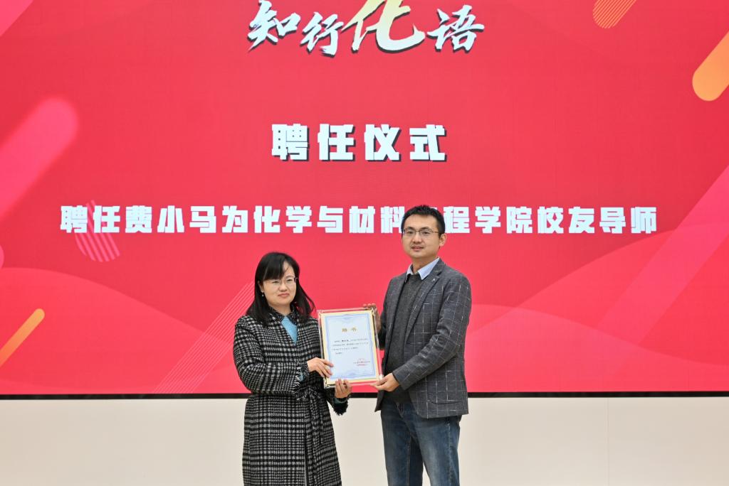 董霞感谢三位优秀员工回院传经送宝,并为费小马员工颁发PA视讯官方网站“员工导师”聘书。分享环节,费小马结合自身十数年成长经历,与同学们分享求学、求职心路历程,并从管理者角度提出职场发展的三大核心要素:思维、激情、能力,引导同学们做勤学善思、守正创新的新化工人。郭岩松以“人生路很长,往前看一步”为主题,回顾了自己从本科到求职的七年奋斗历程,结合个人在生涯规划实践过程中的摸索、成长,提出“提升认知”“培养情商”“热爱生活”三点建议。董媛以“一块“好材料”的加工与应用”为题,从“笃学尚行,止于至善”的校训切入,为同学们分享了自己的学习成果和学习经验,并提出了五个“自”——自信,自律,自省,自立,自强,给予学子们鼓舞。交流提问环节,三位员工分别就行业发展、职业规划、能力提升、保研升学等问题与同学们进行了答疑交流。