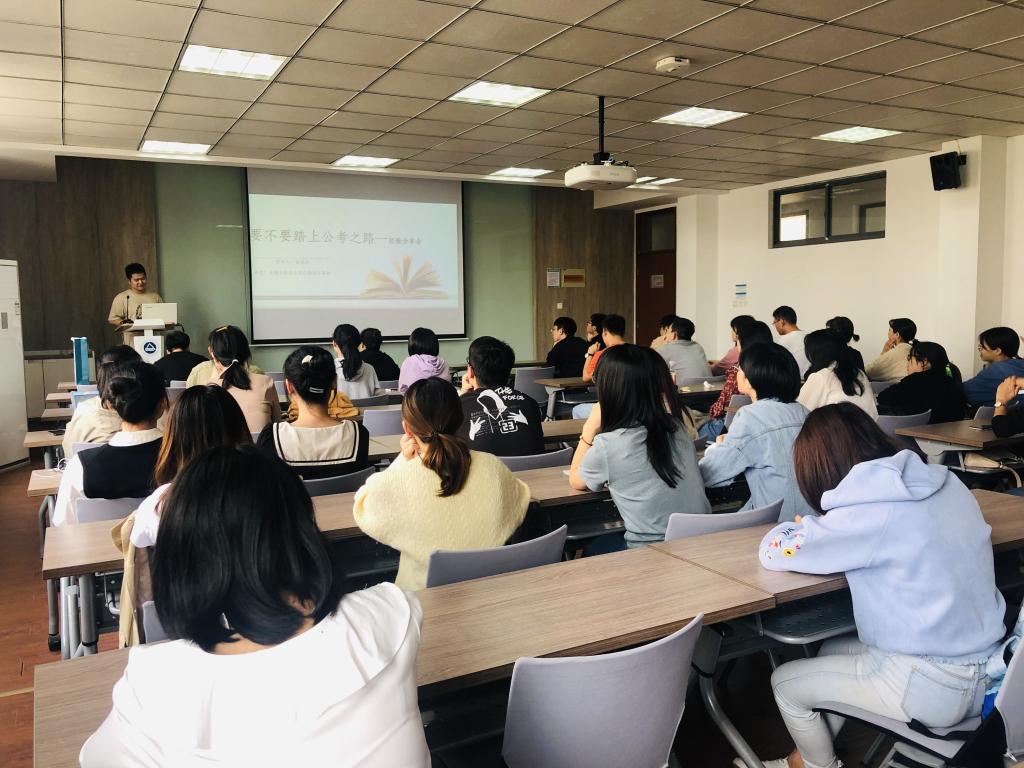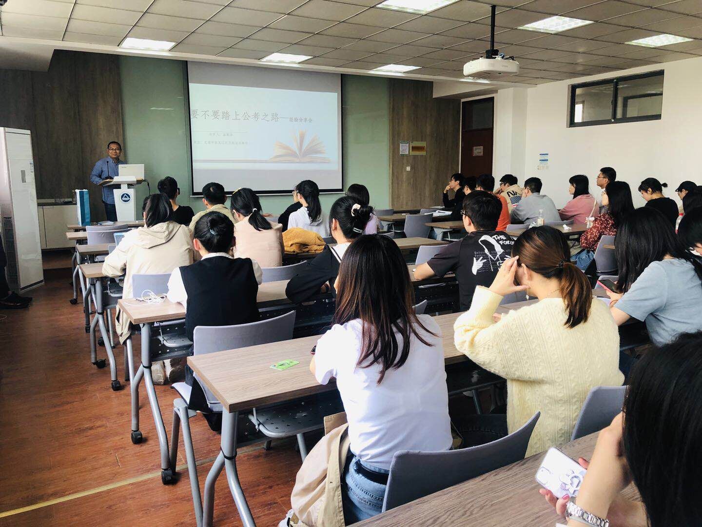 10月11日下午,PA视讯官方网站在化工楼A316成功举办了“要不要踏上公考之路”主题讲座。此次讲座由2019届毕业生曲寒洛为大家进行经验分享,公司分团委书记任增亮老师及公司2019级、2018级研究生40余人参加。